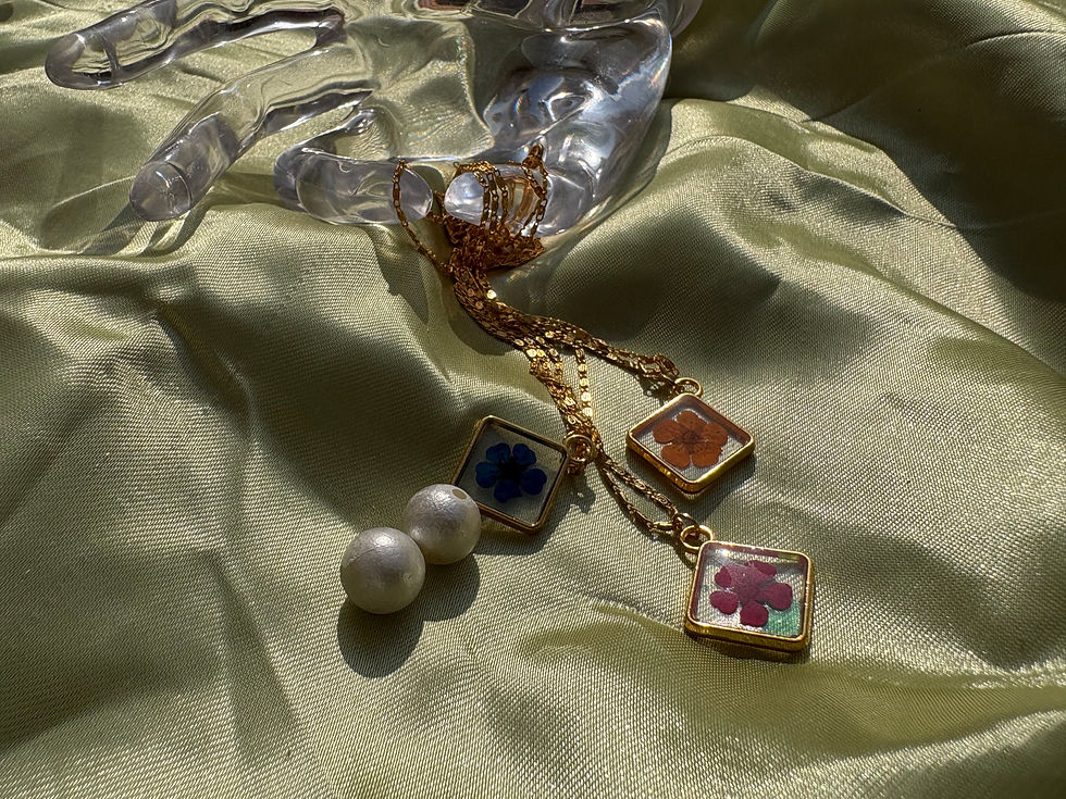 Adorn yourself with the exquisite Gold Leaf Dangle Earrings from Petalsnjewels. Handmade with meticulous care, these earrings feature stunning resin art encapsulating delicate gold leaf that dangles gracefully. Each earring boasts 2 white diamond shapes, artistically arranged one on top of the other, creating a breathtaking display of craftsmanship. Experience nature's beauty, uniquely designed for you, and elevate your elegance with these captivating pieces. Perfect for any occasion, these earrings are not just jewelry, but a statement of refined taste.